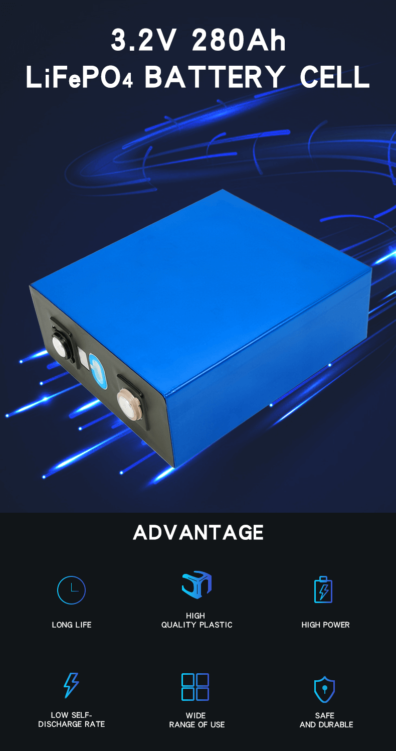यो उल प्रमाणित 3.2V 280Ah LiFePO4 ब्याट्री सेल निम्न फाइदाहरु छन्:
