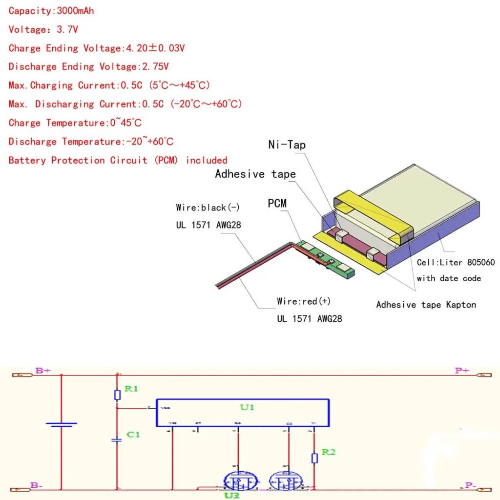 | क्षमता: | 3000 mAh | Charge Voltage: | 3.7-4.2V |