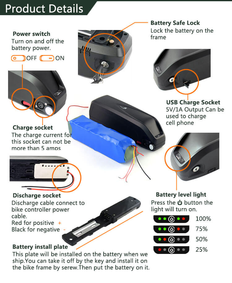 | उत्पाद नाम | Electric Bike Kit Battery Electric Bicycle battery 48V 15aH Rechargeable Batteries 18650 cell |