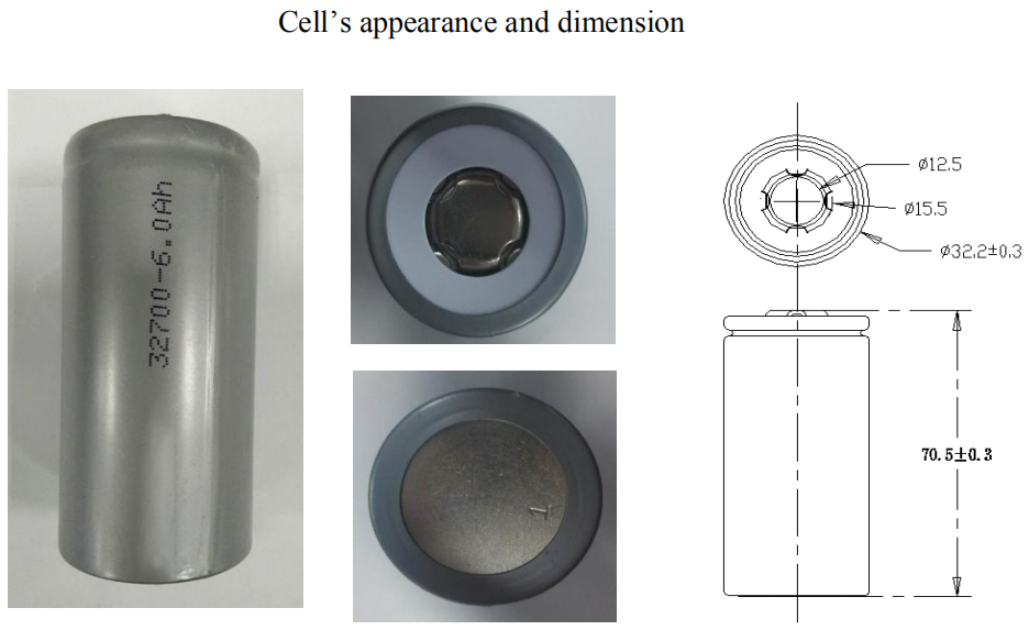 सेल साइज | व्यास: .2२.२ ± ०.। मिमी, अधिकतम .5२..5 मिमी | उचाई: .5०..5 ± ०.। मिमी, अधिकतम 7070..8 मिमी |
